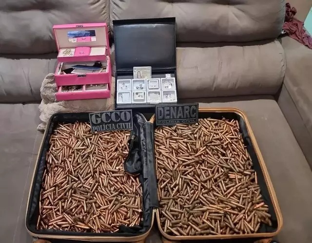 Na residência a policia apreendeu 88,5 quilos de cocaína pura, R$ 1.722.285,00 em dinheiro, uma pistola Taurus 380, um fuzil Colt e três veículos (um Hyundai HB20, uma S10 e uma Toyota Hilux branca)....
